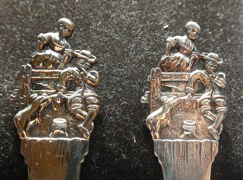 Lille Claus & Store Claus børnebestik i forgyldt sølv. Barneske