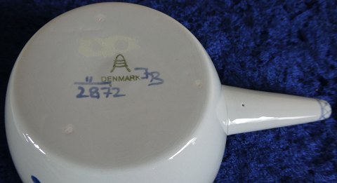 New Tranquebar oder New Trankebar Fayence Geschirr von Aluminia und Royal Copenhagen. Royal Copenhagen Fayence-Porzellan. Stielkasserolle oder Soßenschüssel Nr. 2872 mit Deckel, Henkel und Ausgießer aus Aluminia, in gutem, gebrauchtem Zustand.