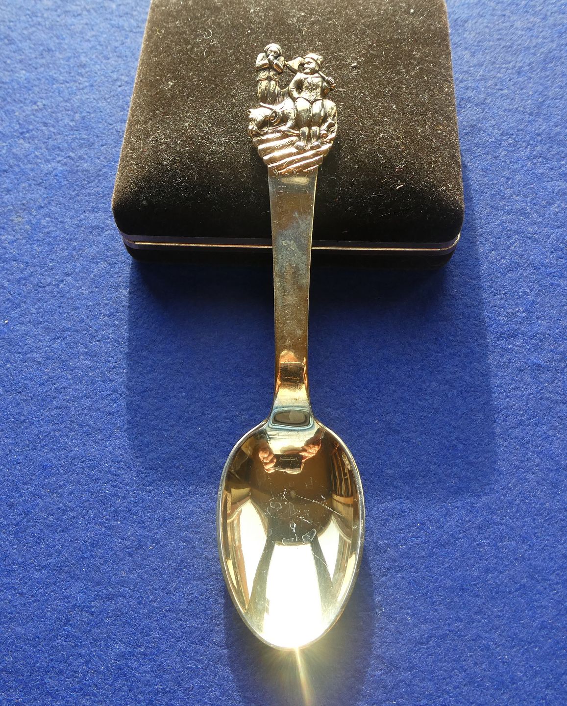H.C. Andersen barnebestik i tretårnet forgyldt sølv med Lille Claus & Store Claus.